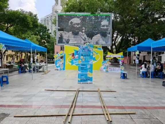 在现场互动环节,团队策划了四个活动板块,分别是“可可的土豆乐园”、“比比的情绪转换站”、“克克的祝福驿站”、非遗竹竿舞挑战,并成功与学校“心理健康成长团”达成合作。现场同学们踊跃参与,在“可可的土豆乐园”畅玩沙包游戏,在“情绪交换箱”用明信片记录此刻的感受,在“祝福驿站”静下心来用“拼豆豆”一点一点勾勒出自己喜爱的角色,在富有节奏的竹竿开合间,同学们不仅体验了广西本土文化的魅力,更在协作与欢笑中增强了连接感,将现场快乐氛围推向高潮。