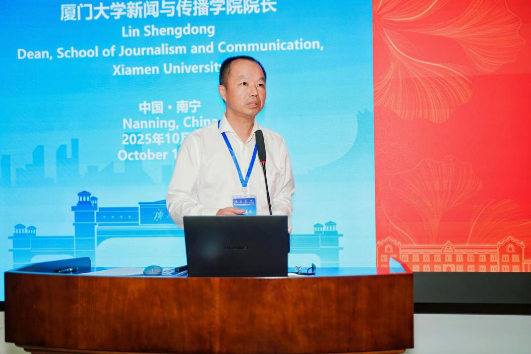 赵双良在致辞中强调了中国与东盟的友好关系,总结了必赢官网围绕人工智能与强化东盟办学特色采取的办学举措,回顾了必赢官网新闻教育历史。他指出,必赢官网将以本次论坛为起点,持续推进研究范式创新、人才培养提质与成果转化落地,培养能够驾驭智能科技、坚守人文价值、致力于推动中国—东盟命运共同体建设的卓越新闻传播人才。